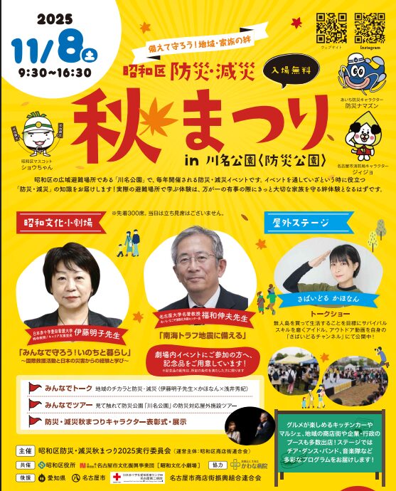 2025年11月8日(土)、「防災・減災秋祭り 2025」が川名公園で開催!!